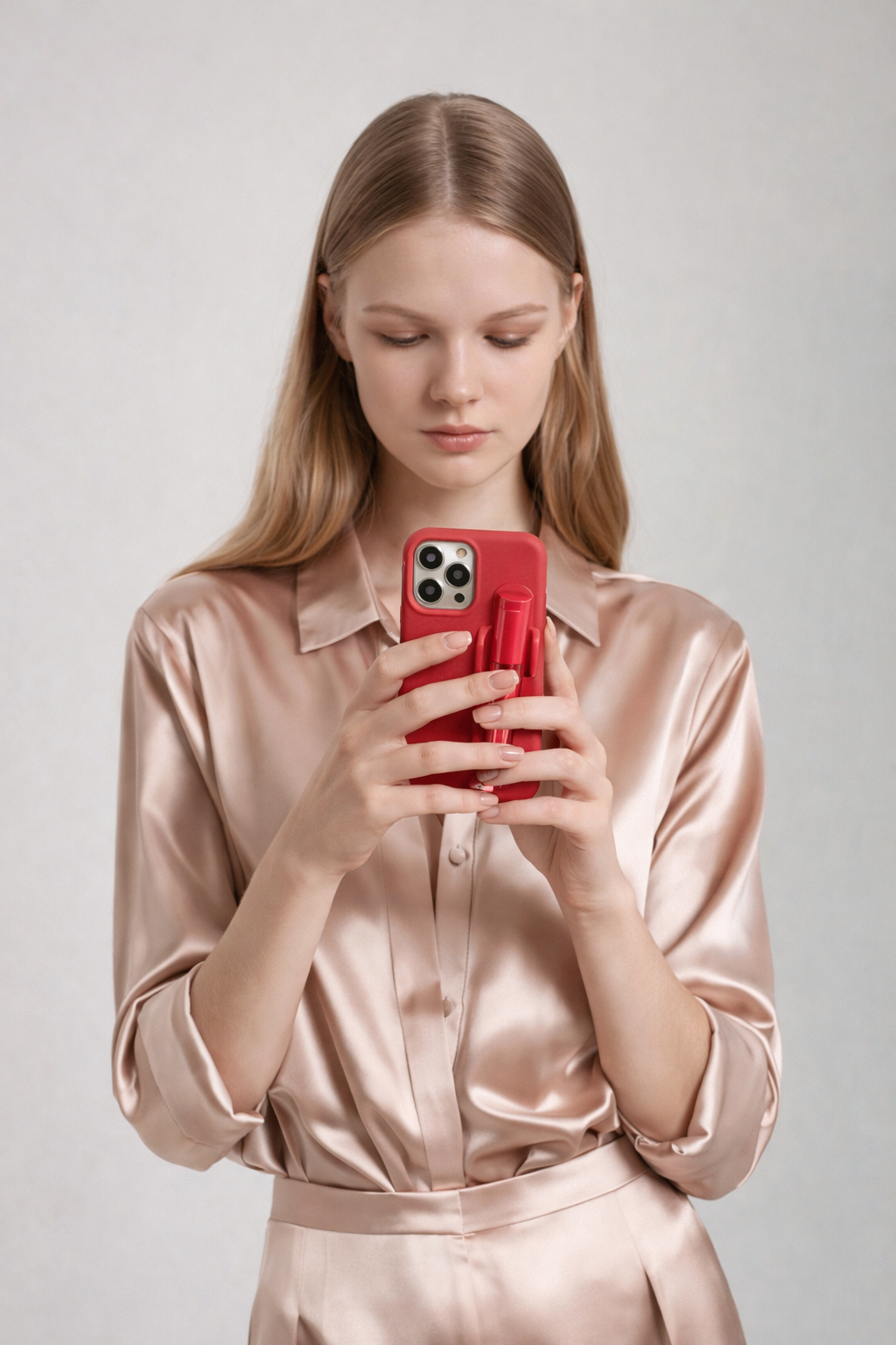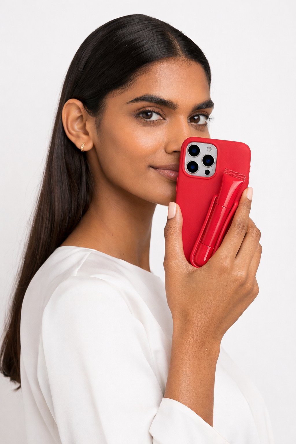 Our phone cases feature a sleek design with an integrated holder for lip gloss, marrying elegance with everyday functionality.